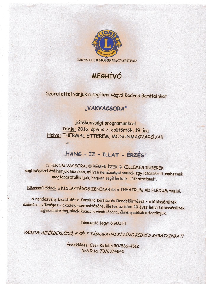 Beszámoló és élmények a tavalyi mosonmagyaróvári jótékonysági vakvacsoráról: