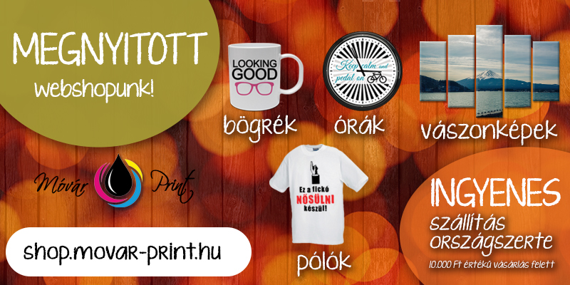 Ezek után következnek a bögrék, pólók, órák, puzzle-k, páros termékek és az egyedi tervezésű naptárak, melyek mind megrendelhetőek webáruházunkban. Cím: shop.movar-print.hu