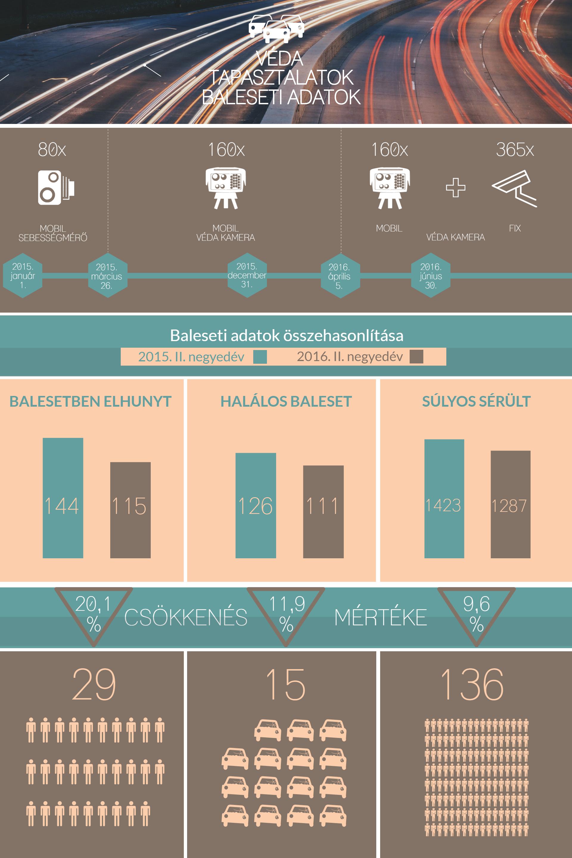 A közlekedési balesetek bekövetkezésének egyik meghatározó oka a sebességtúllépés. Ennek visszaszorításával – az ezt célzó rendszeres és technikai oldalról is támogatott ellenőrzésekkel – érhető el, hogy kevesebb baleset történjen, és azok súlyossága mérséklődjön. Visszatekintve, 2015. április 1. és 2015. június 30. között 126 közlekedési baleset során 144 ember vesztette életét, míg 2016 ugyanezen időszakában, 111 esetben 115-en vesztették életüket az utakon. Tavaly április, május és június hónapokban 1423-an, míg az idei második negyedévben 1287-en szenvedtek súlyos sérülést közlekedési balesetek során.