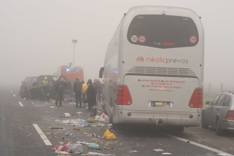 Közúti közlekedési baleset történt 2014. november 2-án 4 óra 50 perckor az M1-es autópálya 142+700-as kilométerszelvényében Győr irányából Hegyeshalom irányában a jobb pályatesten. A rendelkezésre álló adatok szerint egy osztrák felségjelzésű személygépkocsi Hegyeshalom felé haladva eddig tisztázatlan okból a szalagkorlátnak ütközött, majd felborult és a pályatest közepére csúszott. A felborult járművet a nyomában haladó három személygépkocsi kiekrülte, a negyedikként arra közlekedő autóbusz azonban először a felborult járműnek, majd a elkerülő járművek egyikének ütközött. A felborult autóban utazó járművezető a baleset következtében elhunyt, négy utasa megsérült.