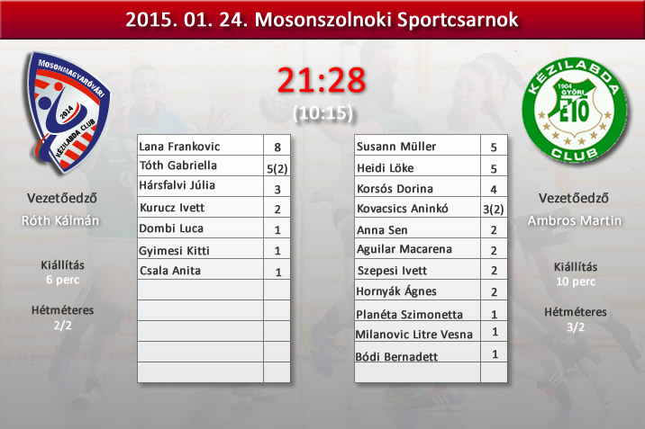 Alapszakasz 16. forduló I Mosonszolnok I MKC SE - Győri Audi ETO KC 21:28 (10:15)
