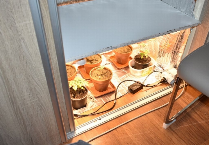 A férfi lakóhelyén a nyomozók kutatást tartottak, amelynek eredményeként a rendőrök a lakásban marihuana palánta növénykultúrát, valamint kábítószergyanús fehér port, illetve a kábítószer porciózásához és fogyasztásához használatos tárgyakat találtak és foglaltak le.