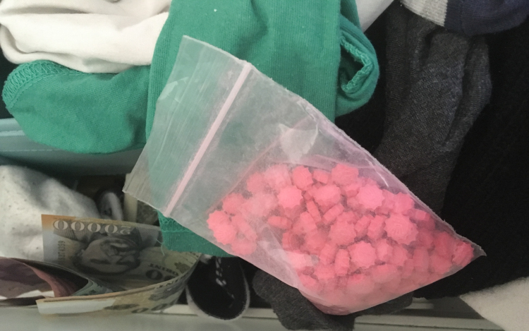 A rendőrök átkutatták közös VI. kerületi lakásukat és több mint 3 kilogramm (több ezer) ecstasy tablettát, 310 gramm – az előzetes vegyészszakértői vélemény szerint – kokaint, 76 gramm halucinogén gombát, csekély mennyiségű marihuánát, valamint a kábítószer hígításához és adagolásához használt eszközöket és nagy mennyiségű valutát találtak. A lefoglalt drogok feketepiaci összértéke közel 20 millió forint.