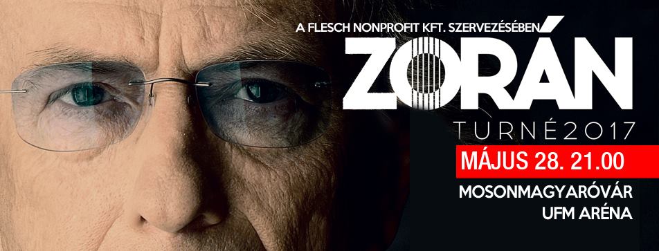 A ZORÁN TURNÉ 2017 koncert ezúttal az idén megnyitott UFM Arénában várja a vendégeket. A legendás zenész ezúttal is kiváló vendégművészekkel érkezik városunkba. Olyan neves előadóművészek lépnek színpadra és szólaltatják meg az ismert dalokat, mint Horváth Kornél, Sipeki Zoltán, Lattmann Béla, Gátos Iván, Gyenge Lajos, Csányi István, Óvári Éva, Kabelács Rita és Péter Barbara.