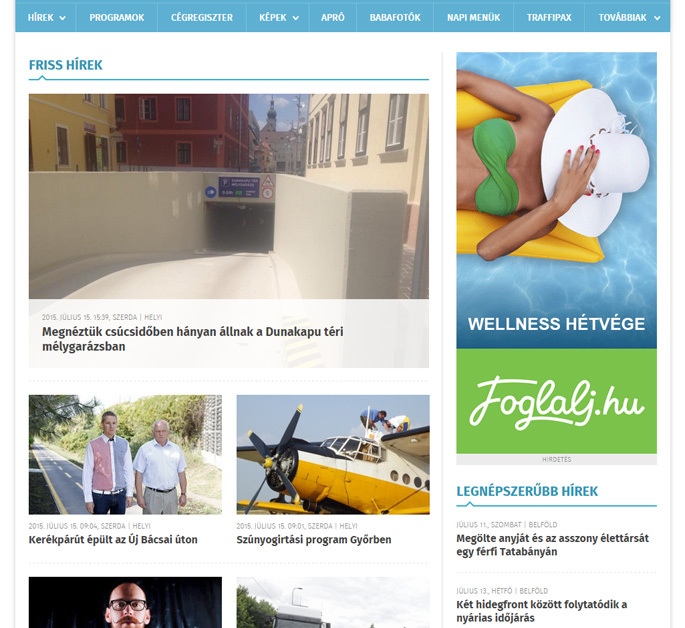 A közép banner minden egyes aloldalon megjelenik az egyes tartalmai részek között.