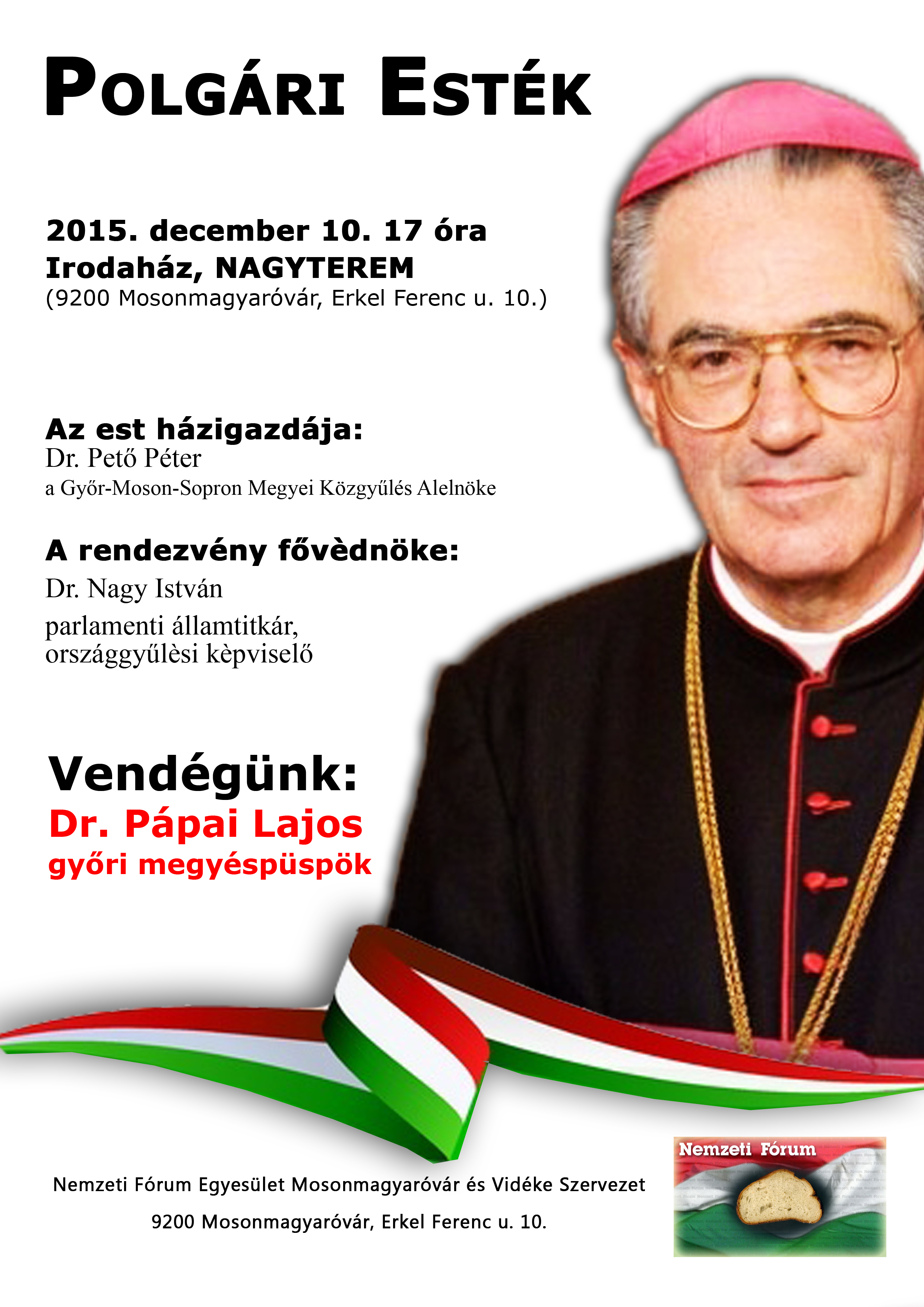 A Polgári esték december 10-i vendége Dr. Pápai Lajos győri megyéspüspök
